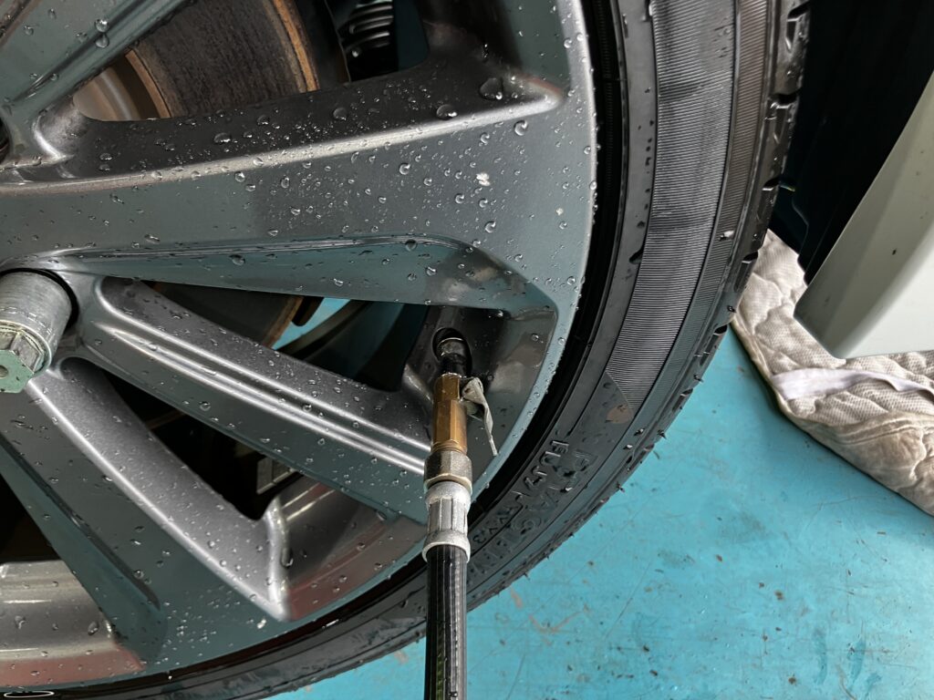 エンジンオイルを抜いている間にタイヤローテーションやブレーキ周りなどの確認を行います。
