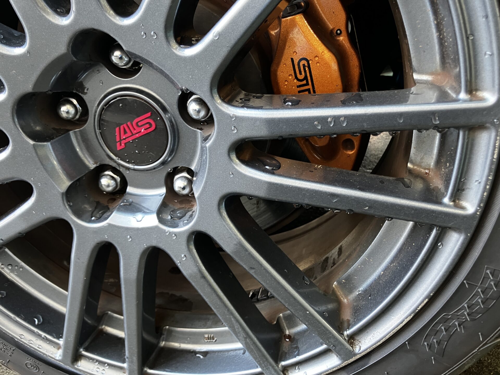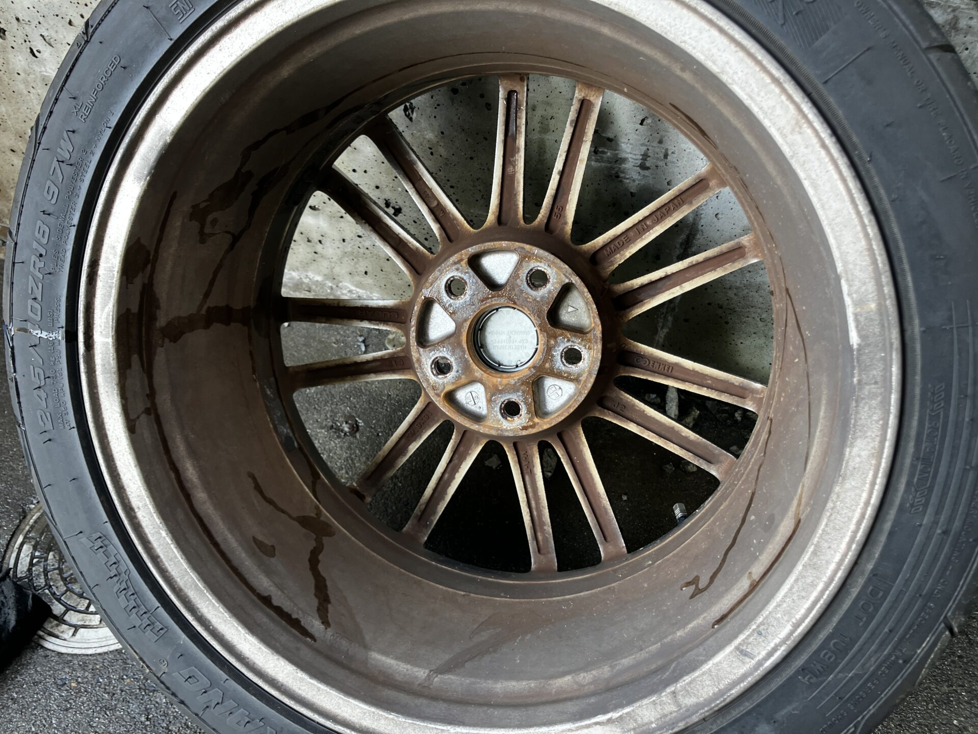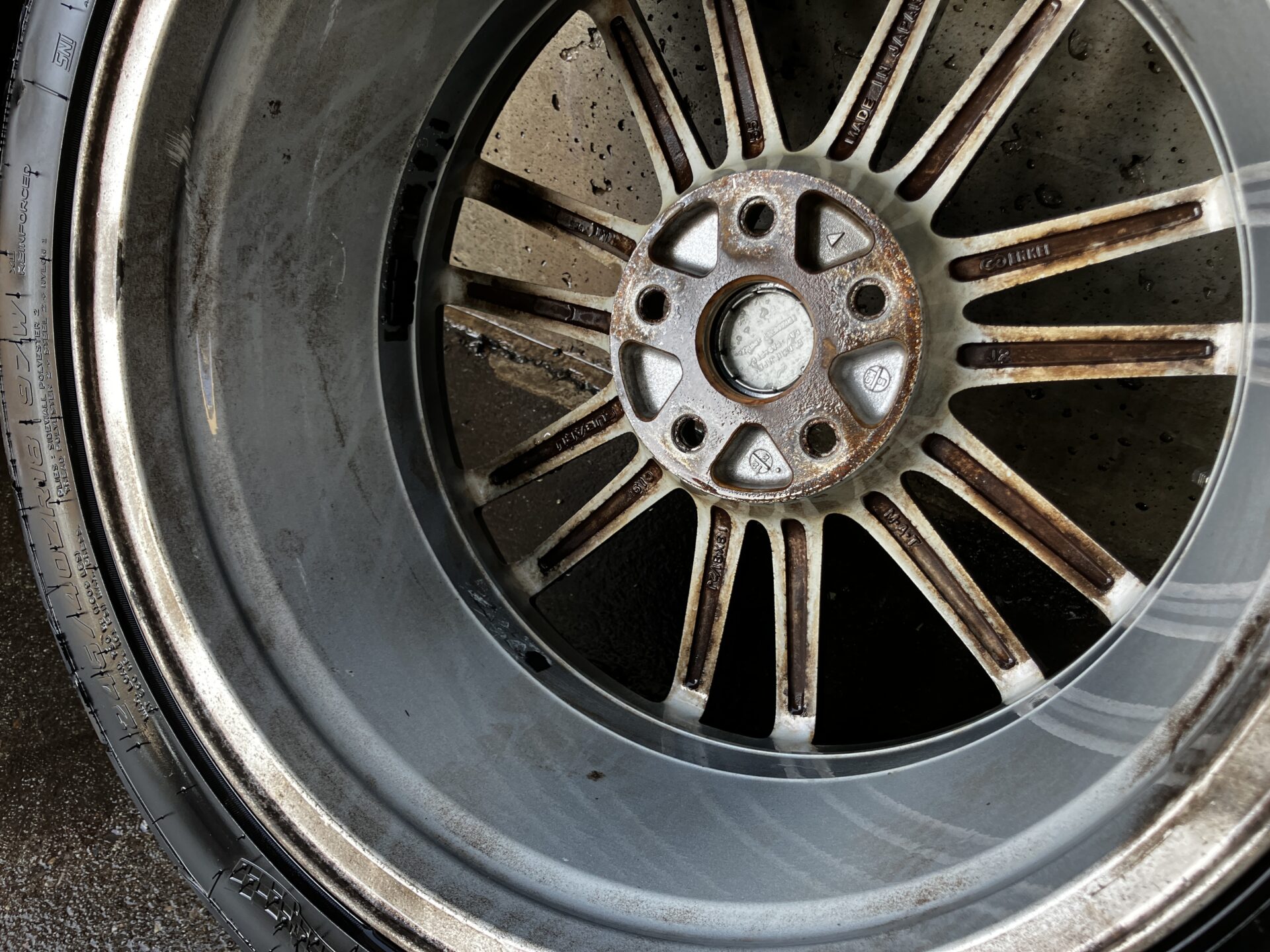 気になっていたホイールです。ブレンボの為ダスト汚れがこびり付いています。