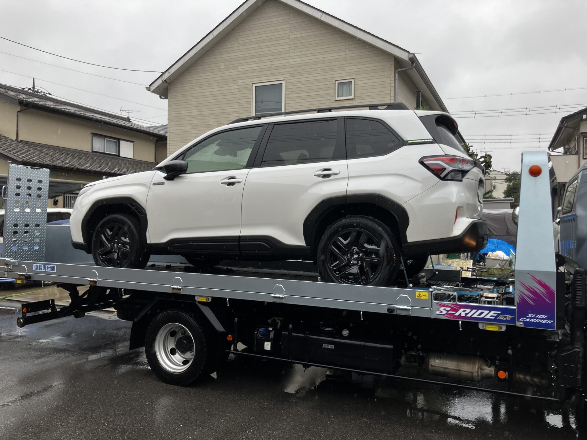 8月31日にオーダーをいただいた新型フォレスターが登録完了し届いたので宇都宮のお客様へ納車です。