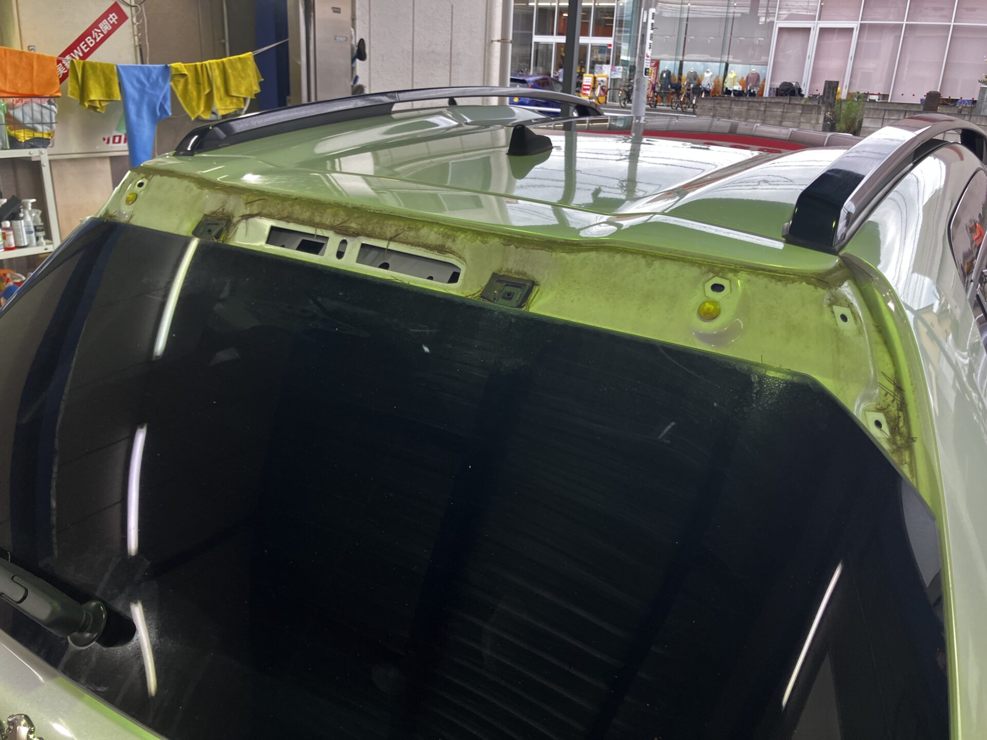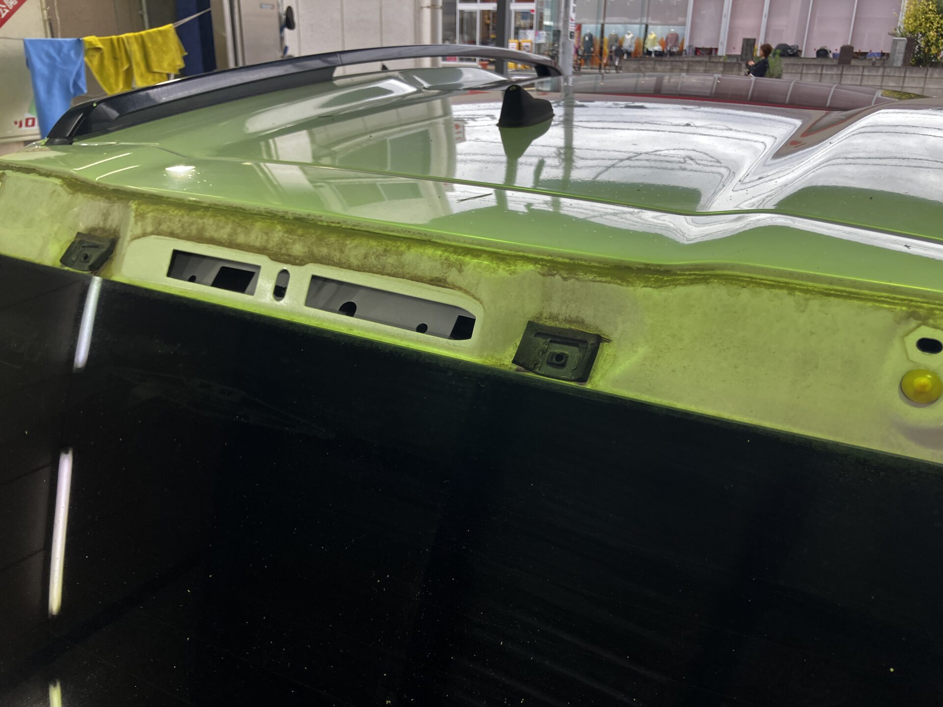 いつも遠藤先生を参考に作業してますが、プジョーは遠藤先生の対象外でしたので雰囲気で作業していきます。横4カ所、真ん中2か所の4カ所のトルクスボルトを外しリヤスポイラーを外します。