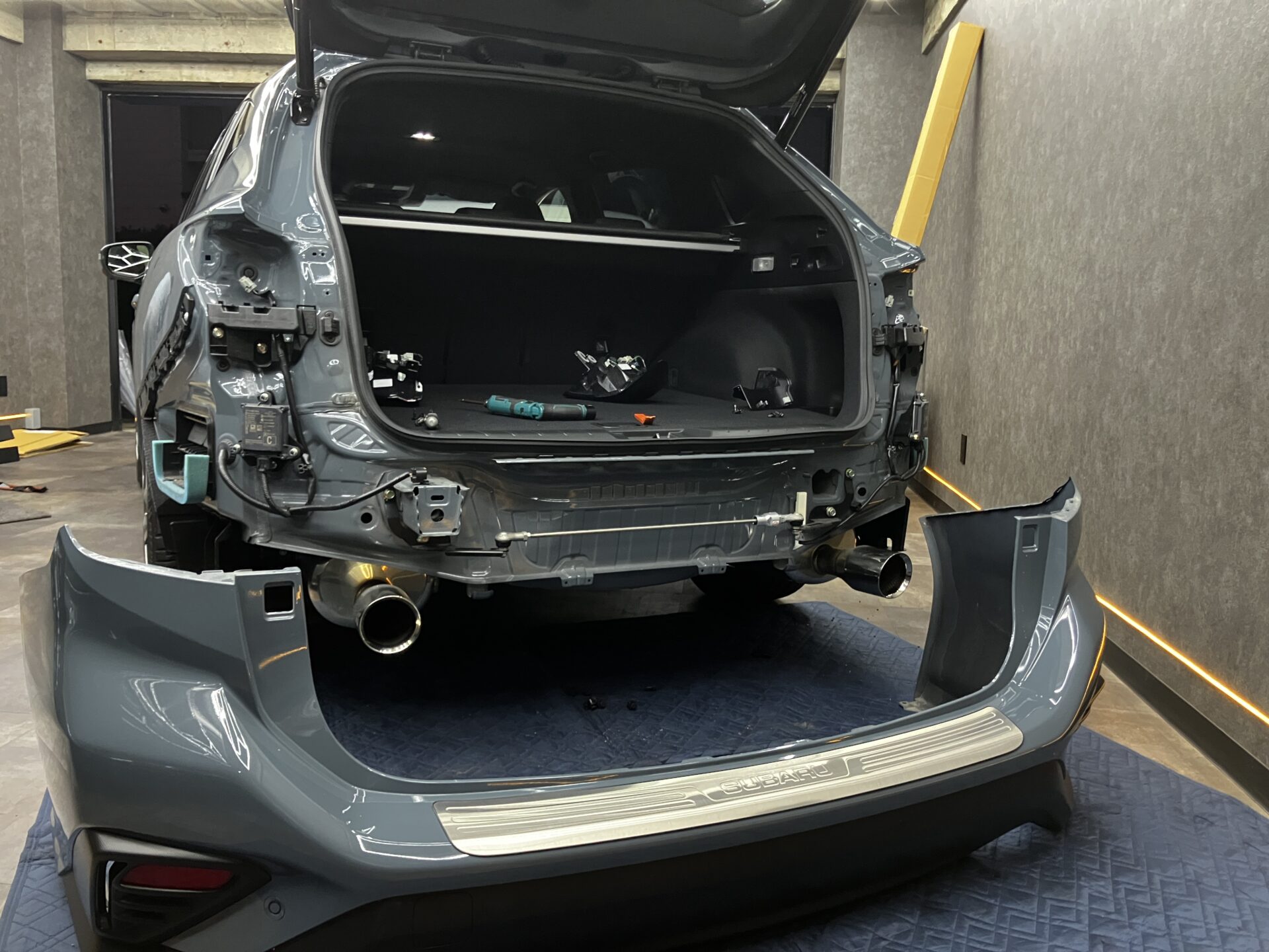 ご注文いただいていますもう一台のレヴォーグSTIスポーツ#にSTIエアロの取り付けです。