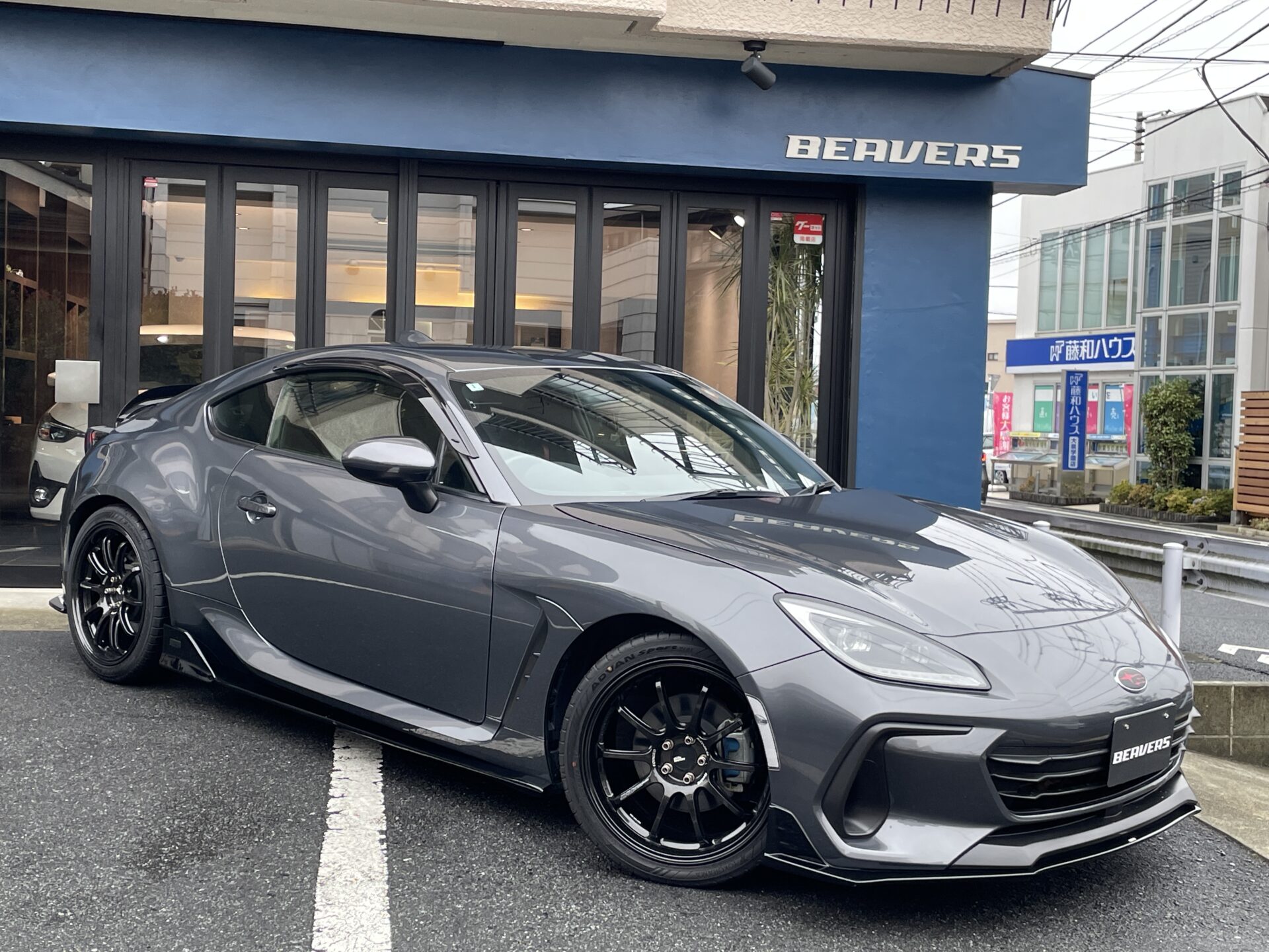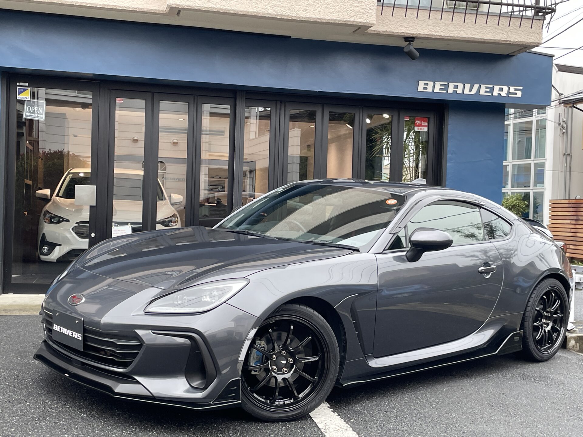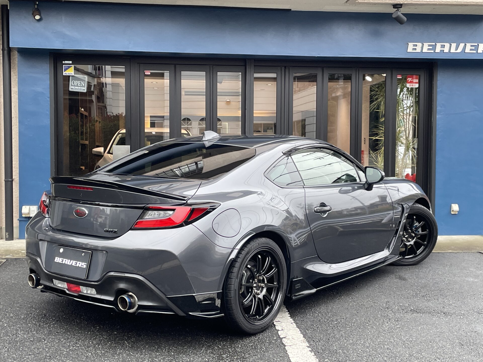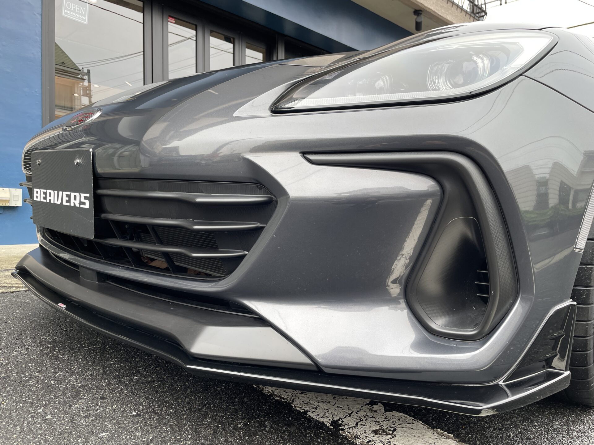 本日は車両入庫のご案内です。2022年登録のBRZ、グレードはS。6MTです。色々とカスタムされています。