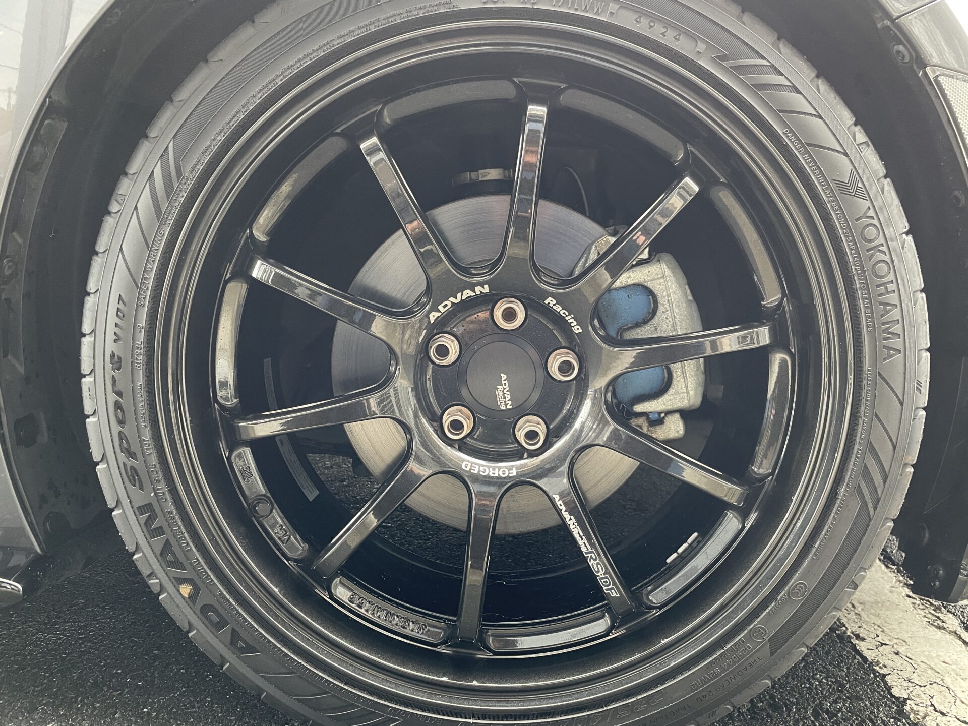 ホイールはアドバンRS-DF 鍛造ホイールです。タイヤは2024年に変えてあり残り溝も問題ないです。