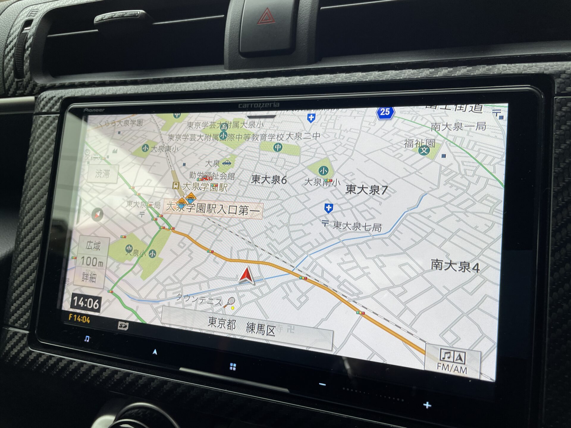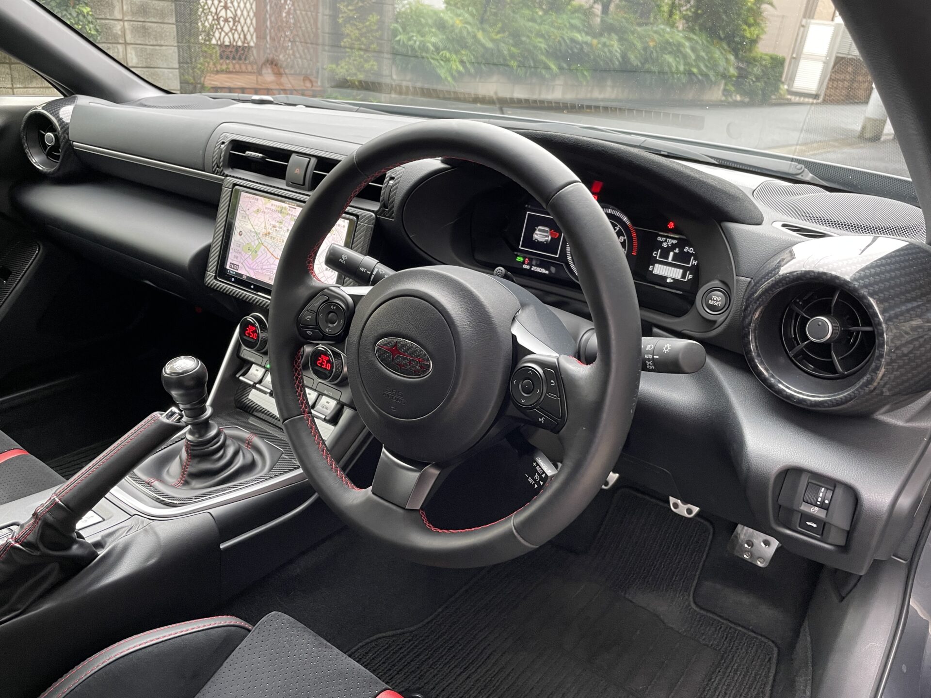 内装は所々、カーボン調パネルが装着されて程よい変更です。綺麗に使われていて清潔感のある車内です。