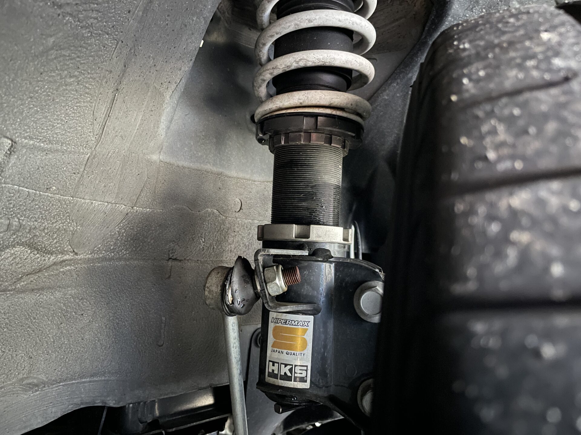 サスペンションはHKS ハイパーマックスSで程よい車高になっています。乗り心地も悪くないです。