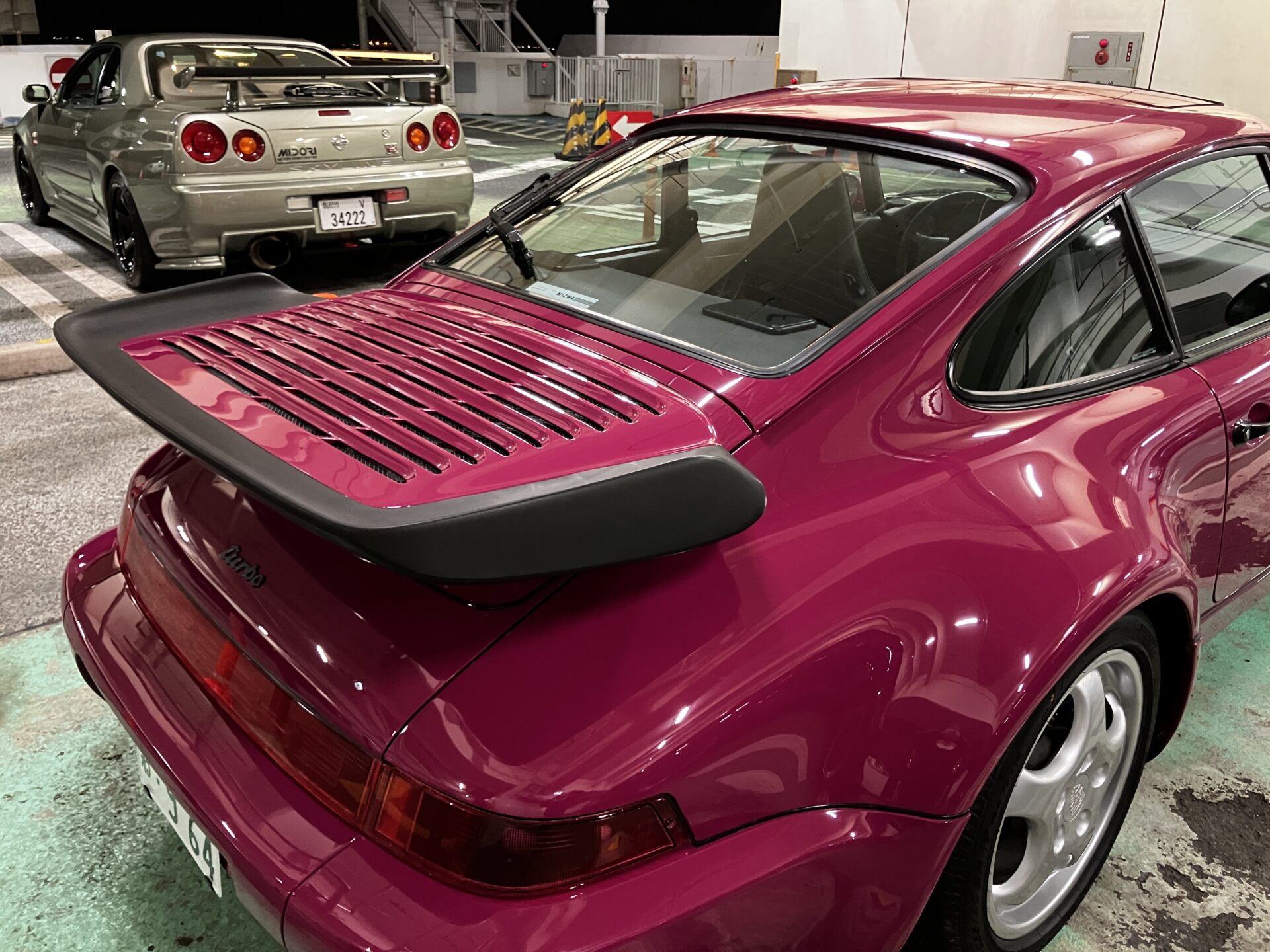 向こう側の34GTR見た事のないナンバーが装着されてます。ドバイのナンバーぽいです。ドバイっぽい方が乗られてました。エンジンをかけるとどこからか海外の方が集まってきました。空冷ポルシェ海外の方からはモテモテです。