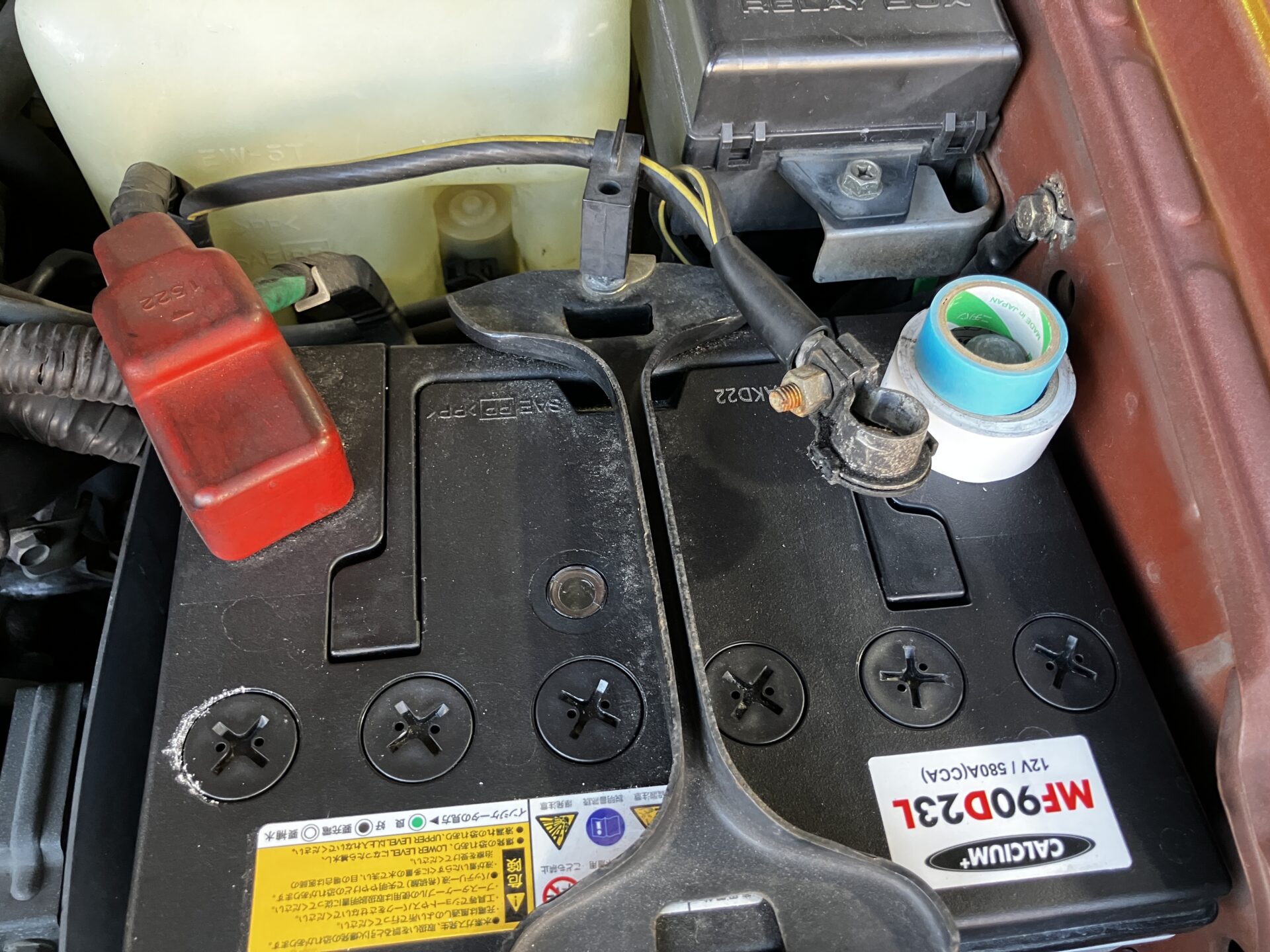 安全のためバッテリーマイナス端子を外します。