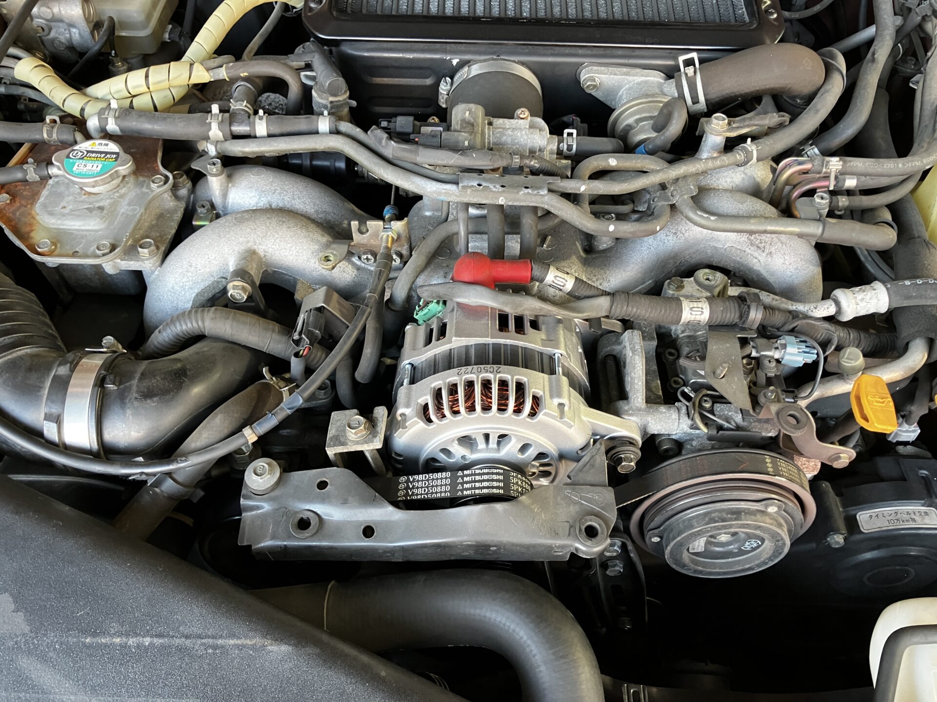 オルタネーターを取り付けて完了です。交換後は症状がでなくなりました。
