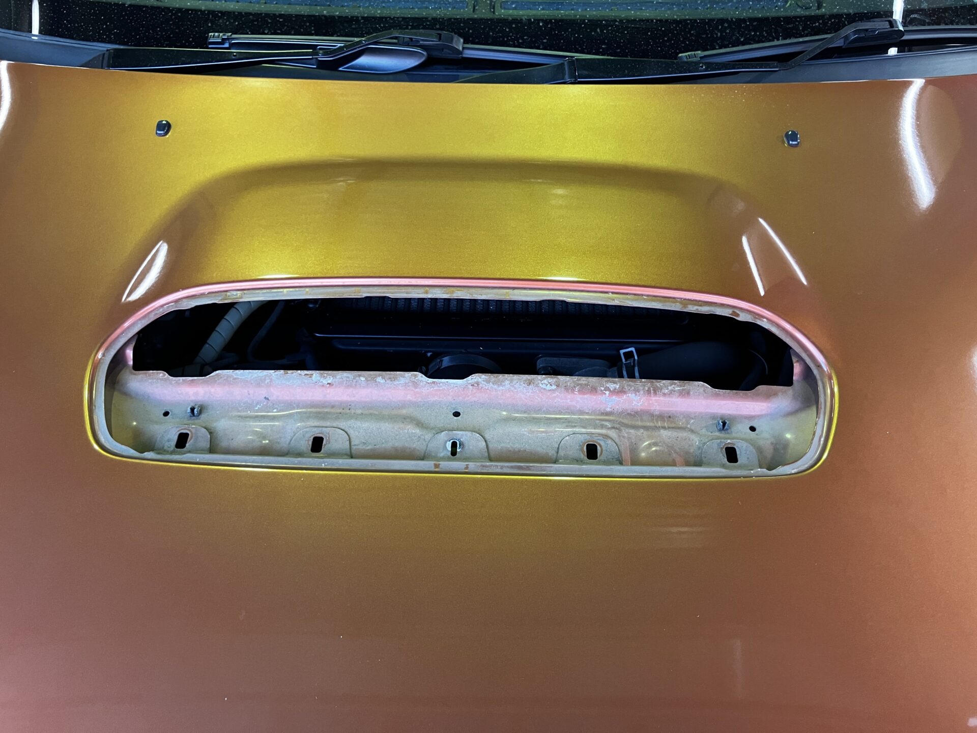 次はボンネットインテークのガタつき修正です。