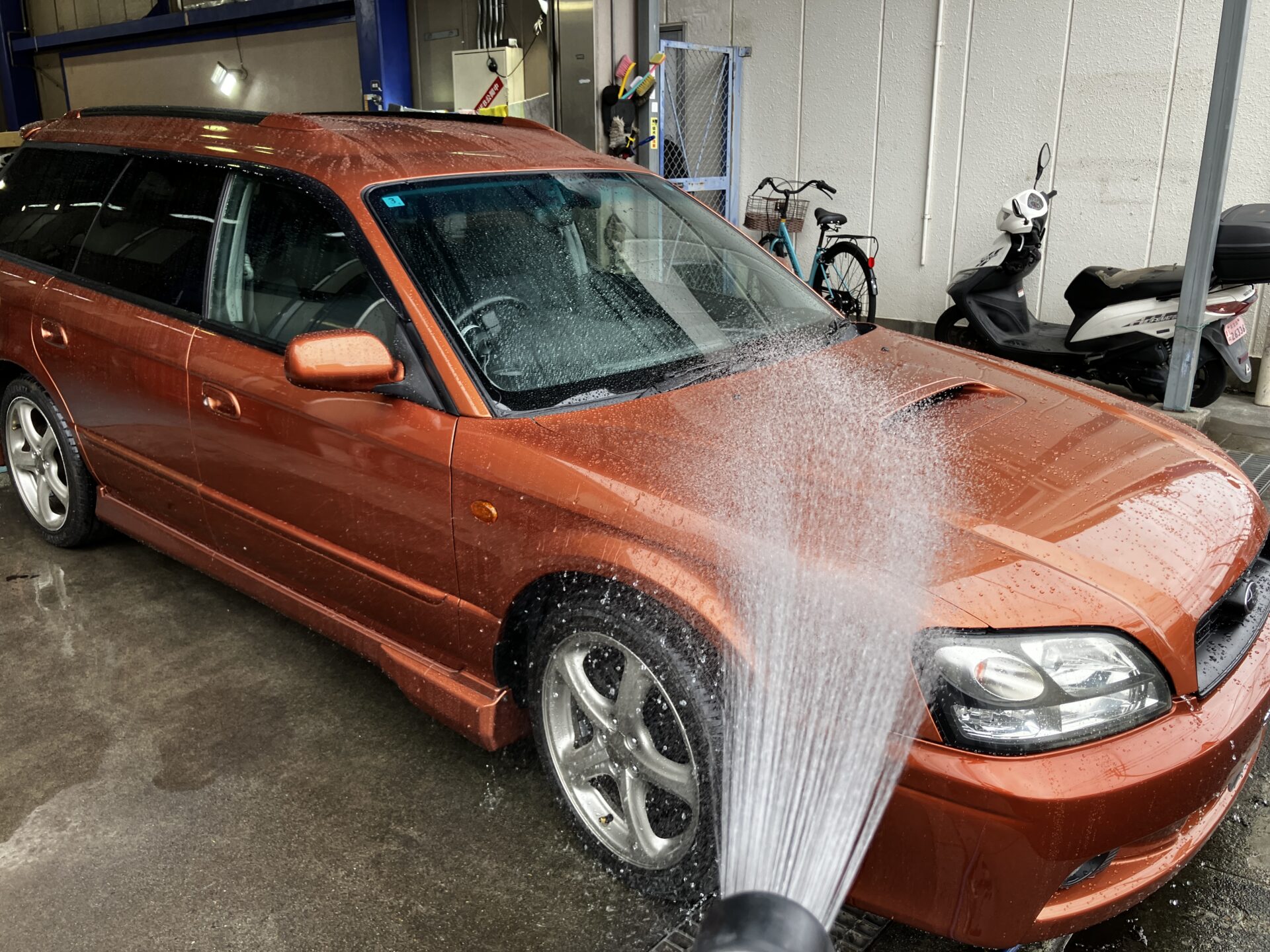 最後に洗車をします。